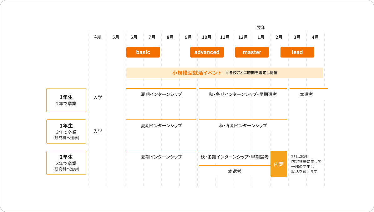 学生の就活フェーズに合わせたプログラムを実施しています。